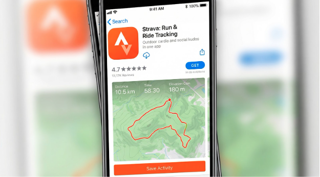 Strava GPS Run and Ride Tracking App Store Screenshot with Route Map