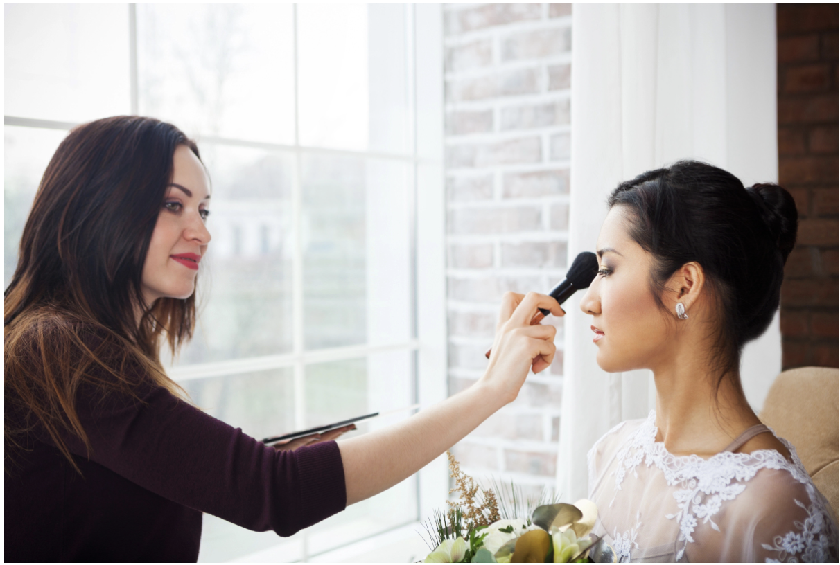 Natural light matters for practical reasons too. Makeup artists consistently recommend applying bridal makeup near a window because daylight provides the most accurate representation of colour. Under artificial lighting, foundation shades can appear slightly off and lip colour may not match what the bride chose during her trial. By the window, what you see is what you get.