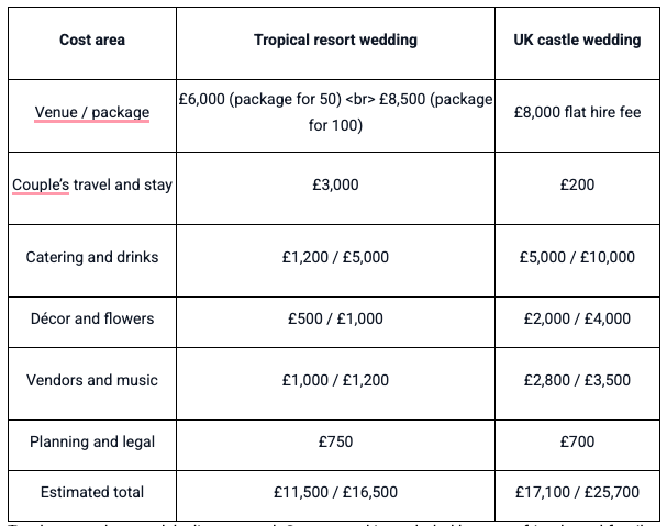 1. Is a destination wedding always cheaper than a UK castle wedding?